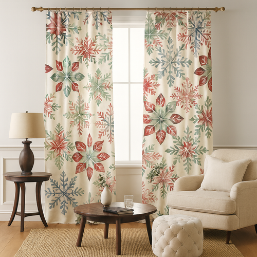 Zasłona "Płatki śniegu" to esencja magicznego zimowego klimatu, która przenosi Cię w świat pięknej zimy. Na gładkiej tkaninie rozkwitają wzory świąteczne.