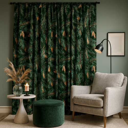 Zasłona "Ciemne gałązki" to esencja magicznego zimowego klimatu, która przenosi Cię w świat pięknej zimy. Na gładkiej tkaninie rozkwitają wzory świąteczne.