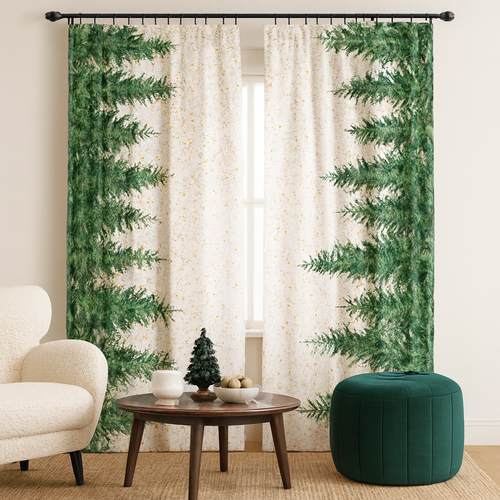 Zasłona "Pionowe świerki" to esencja magicznego zimowego klimatu, która przenosi Cię w świat pięknej zimy. Na gładkiej tkaninie rozkwitają wzory świąteczne.