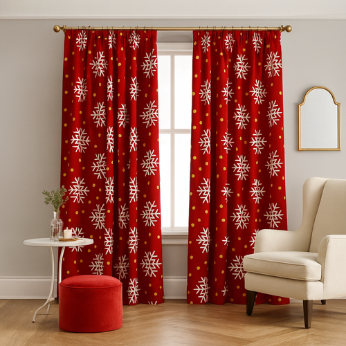 Zasłona "Piękne płatki śniegu 2" to esencja magicznego zimowego klimatu, która przenosi Cię w świat pięknej zimy. Na gładkiej tkaninie rozkwitają wzory świąteczne.