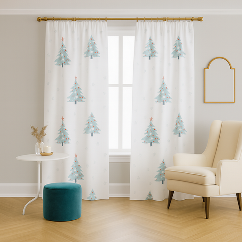 Zasłona "Choinkowy las 2" to esencja magicznego zimowego klimatu, która przenosi Cię w świat pięknej zimy. Na gładkiej tkaninie rozkwitają wzory świąteczne.