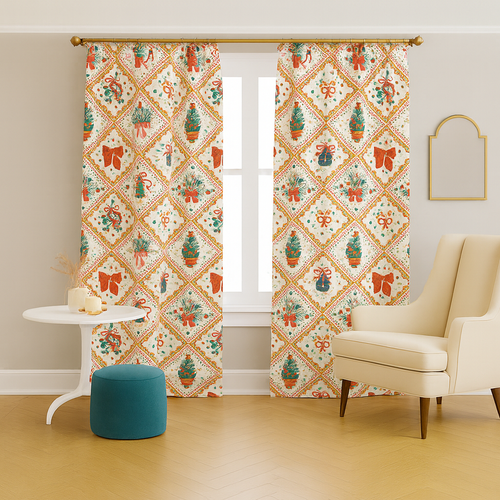 Zasłona "Świąteczny prezent" to esencja magicznego zimowego klimatu, która przenosi Cię w świat pięknej zimy. Na gładkiej tkaninie rozkwitają wzory świąteczne.