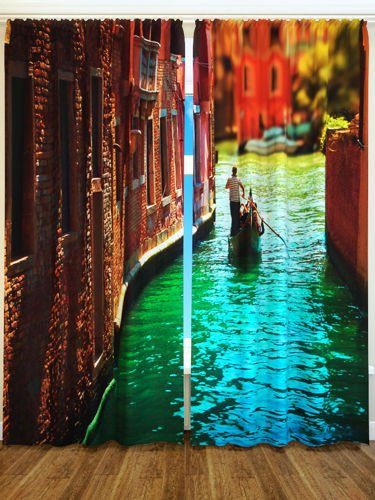 Na zasłonie "WENECJA GONDOLIERÓW" uwieczniono malowniczy widok Wenecji. Po obu stronach kanału widać kolorowe budynki, których odbicia pięknie odzwierciedlają się w wodzie. Centralnym punktem obrazu jest gondola wiosłowana przez gondoliera, co dodaje kompozycji dynamiki i autentyczności. Żywe kolory i szczegółowe przedstawienie krajobrazu tworzą niezwykle realistyczny efekt, który przyciąga wzrok i nadaje wnętrzu niepowtarzalny charakter.