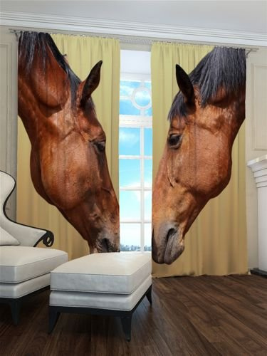 Zasłona jest wyposażona w mocowanie typu taśma, co umożliwia łatwe zawieszenie na różnego rodzaju drążkach oraz na haczyki, co daje dodatkowe możliwości personalizacji i dostosowania do indywidualnych upodobań. Motyw "Kare konie" nawiązujący do koni w delikatnych, subtelnych wzorach i kolorystyce nadaje wnętrzu charakteru i elegancji, jednocześnie wprowadzając element natury do pomieszczenia.