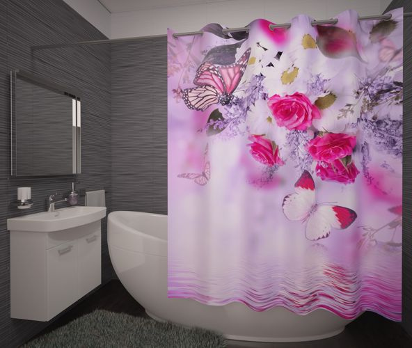 Polecamy Zasłonę Prysznicowa Kwiaty na potokiem z kolekcji zasłon prysznicowych.