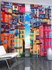 Motyw "Kolorowego miasta" na zasłonie to połączenie intensywnych kolorów i dynamicznych wzorów, które nadają pomieszczeniu niepowtarzalny charakter. Dominujące barwy - od śmiałych odcieni czerwieni po głębokie błękity i zieleń - tworzą wrażenie życia i ruchu, jakby zasłona przenosiła nas do tętniącego życiem miasta.