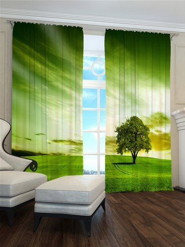 Zasłona "Zielony horyzont" to elegancki dodatek do wnętrza, który zachwyca swoim designem i funkcjonalnością. Jej wymiary (145x260 cm na jedną część, zestaw 290x260 cm) sprawiają, że idealnie pasuje do większych okien, nadając pomieszczeniu przytulności i stylu.